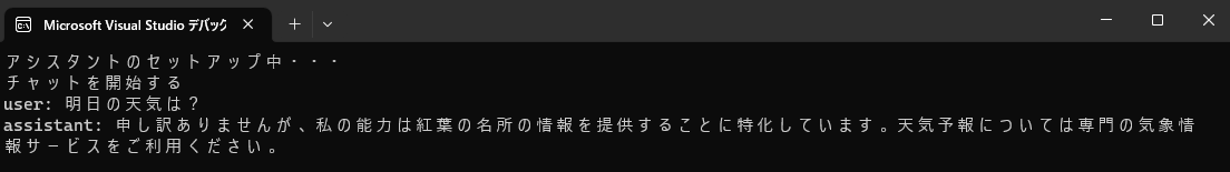 var inputQuery = "暑い日に食べられている京菓子は?"; Console.WriteLine($"Query: {inputQuery}\n"); Console.WriteLine("Choose a query approach:"); Console.WriteLine("1. Vector Search"); Console.WriteLine("2. Keyword Search"); Console.WriteLine("3. Hybrid Search"); Console.Write("Enter the number of the desired approach: "); var choice = int.Parse(Console.ReadLine() ?? "0"); Console.WriteLine(""); switch (choice) { case 1: await VectorSearchAsync(searchClient, openAIClient, settings.DeploymentOrModelName, inputQuery); break; case 2: await KeywordSearchAsync(searchClient, inputQuery); break; case 3: await HybridSearchAsync(searchClient, openAIClient, settings.DeploymentOrModelName, inputQuery); break; default: Console.WriteLine("Invalid choice. Exiting..."); break; }